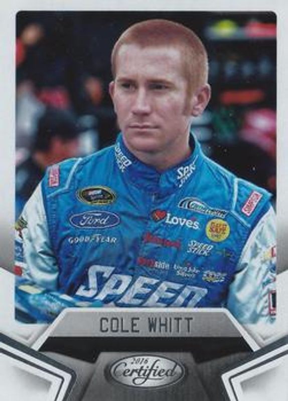 The Cole Whitt 2016 Certified NASCAR #32 Base /99 card is 1 of 18 Cole Whitt's card variations in the 2016 Certified NASCAR set being tracked by Sports Card Investor, including Mirror Red /25, Mirror Blue /20, Mirror Gold /15, Mirror Orange /15, and Mirror Silver /15.