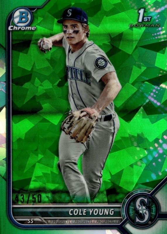 Cole Young 2022 Bowman Draft Sapphire Edition #BDC-112 Chrome - Green /50 (1st) RAW Price Guide