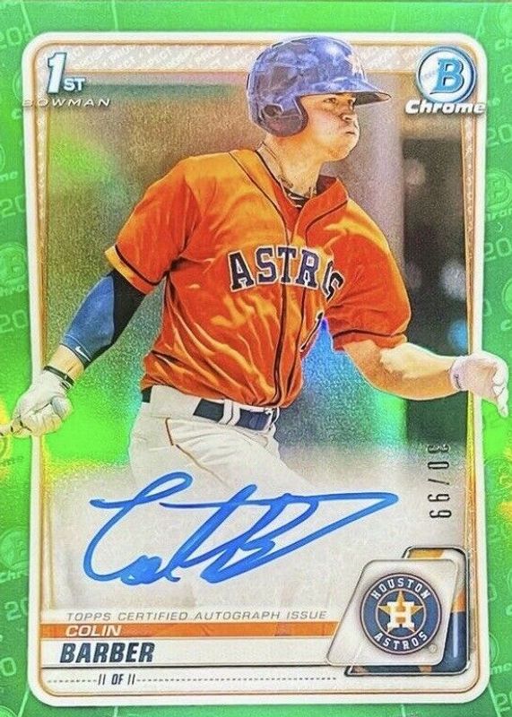 2020 Bowman Chrome Colin Barber Green Atomic Refractor Auto #/99 Astros #CPA-CBA