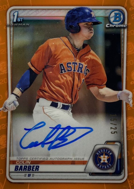 2020 Bowman Chrome Colin Barber 1st Prospect Orange Refractor Auto #01/25 Astros