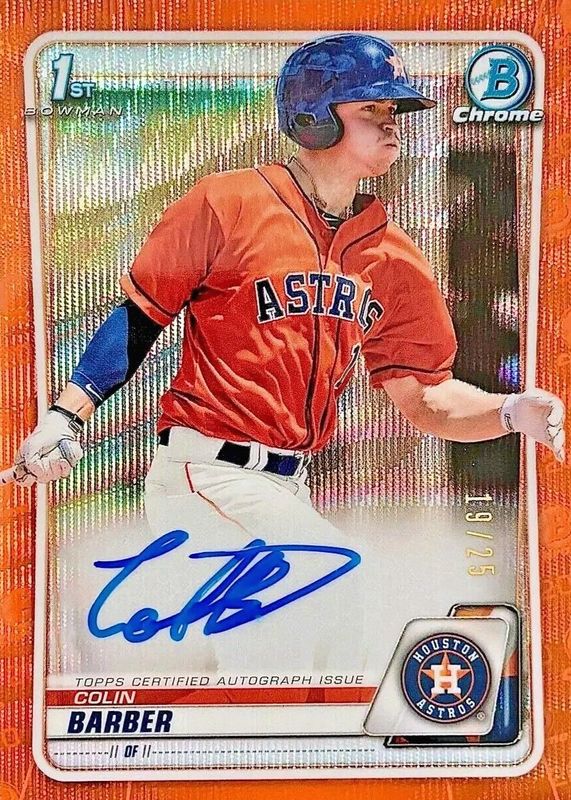 Auctions Ending Soon for Colin Barber 2020 Bowman Chrome #CPA-CBA Prospect Auto - Orange Wave Refractor /25 (1st) RAW
