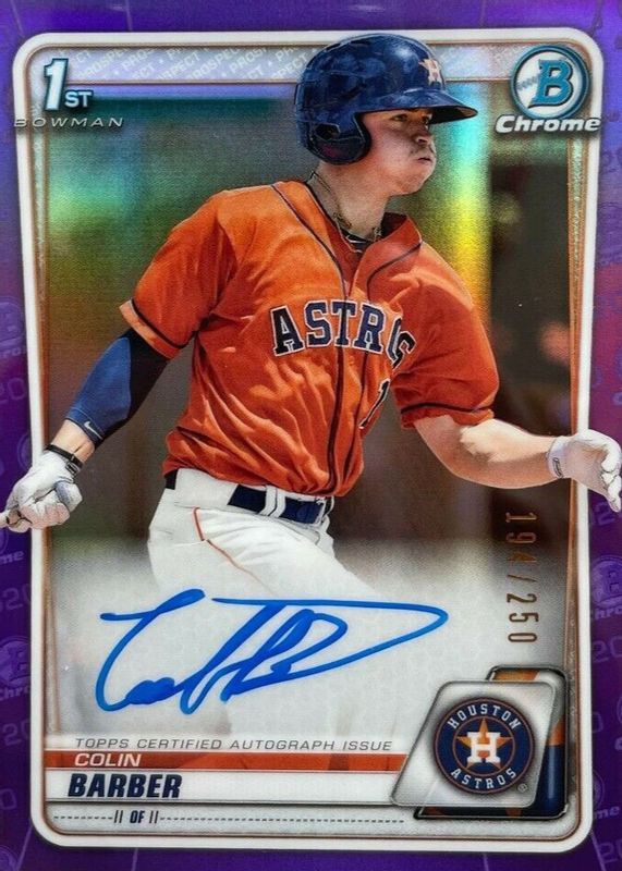 2020 Bowman Chrome Colin Barber 1st Bowman AUTO Purple Refractor 110/250 Astros