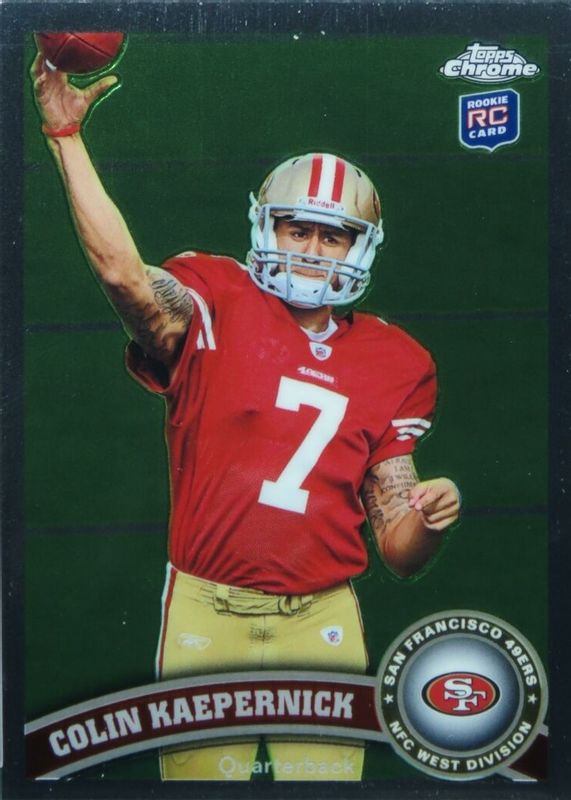The Colin Kaepernick 2011 Topps Chrome #25 Base Rookie card in Raw condition has not changed in price in the last 30 days and was last sold for $1.25 .
