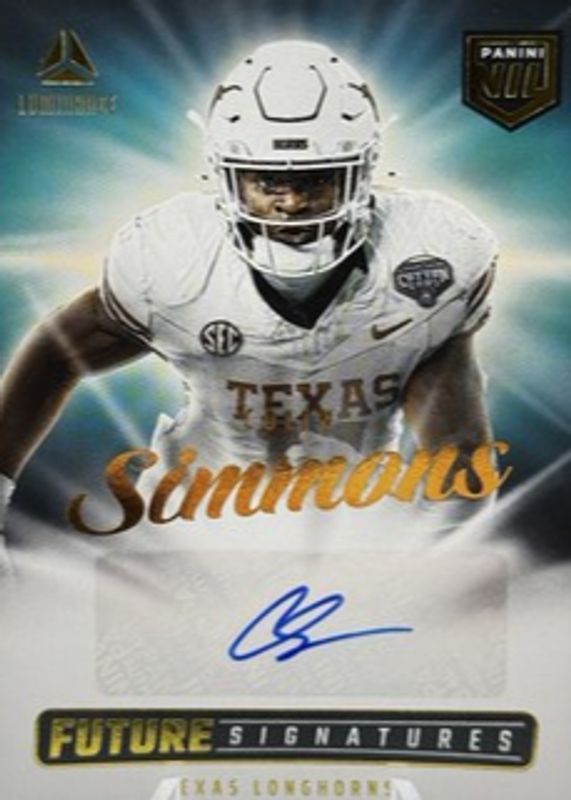 2025 Panini Luminance Future Signatures NIL Colin Simmons AUTO Gold SSP Texas