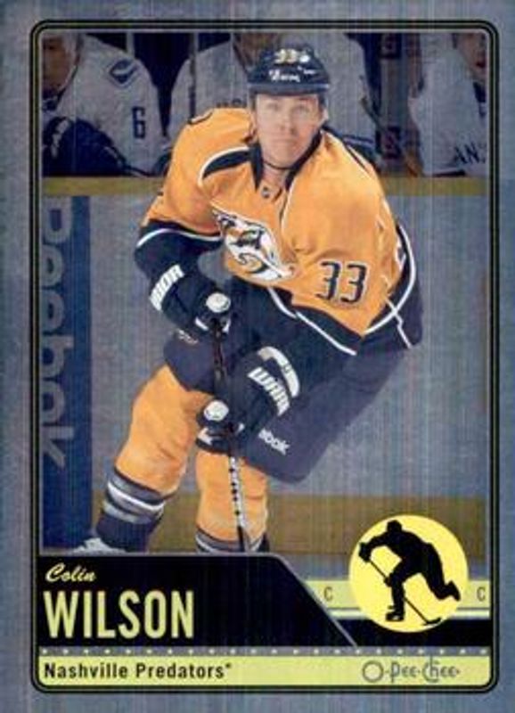 The Colin Wilson 2012 O-Pee-Chee #425 Rainbow card is 1 of 6 Colin Wilson's card variations in the 2012 O-Pee-Chee set being tracked by Sports Card Investor, including Base, Retro, Retro Blank Back, Black Rainbow /100, and Wrapper Redemption Red.