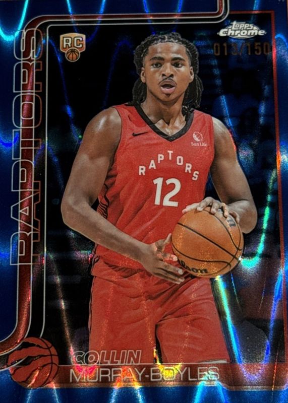 The Collin Murray-Boyles 2025 Topps Chrome #259 Blue RayWave Refractor /150 Rookie card in Raw condition has moved down -$1.50 (-10.0%) in the last 30 days and was last sold for $13.50 .