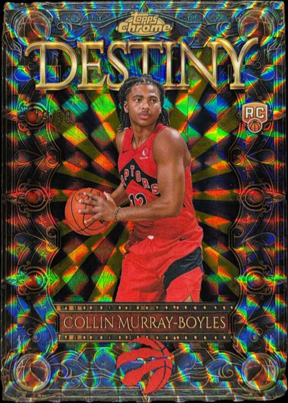 The Collin Murray-Boyles 2025 Topps Chrome #D-8 Destiny - Gold Geometric Refractor /50 Rookie card is 1 of 288 Collin Murray-Boyles' card variations in the 2025 Topps Chrome set being tracked by Sports Card Investor, including Base, 1st Day Issue Refractor, Basketball Refractor, Box Set Refractor, and Image Variation.