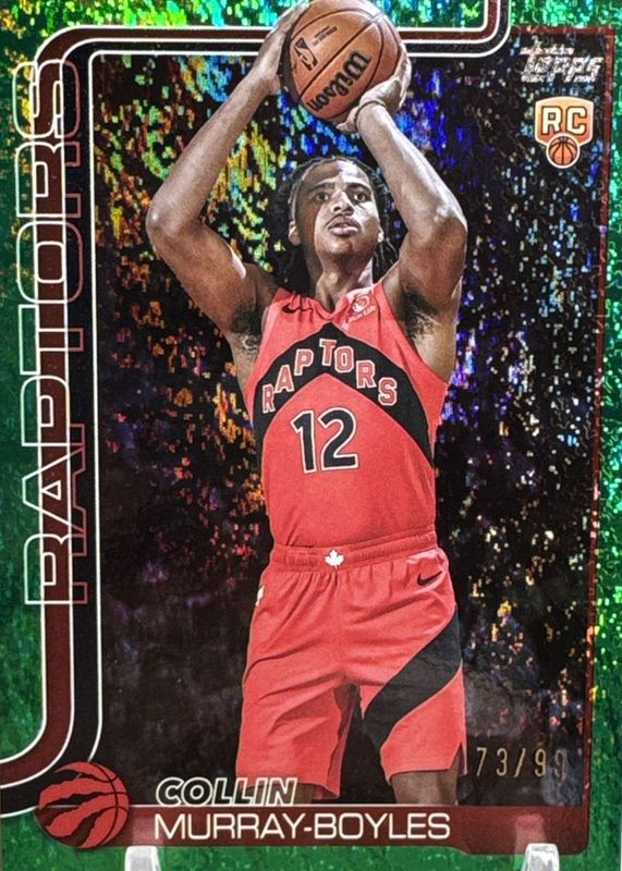The Collin Murray-Boyles 2025 Topps #209 Green Holo Foil /99 Rookie card in Raw condition has moved up $7.99 (+200%) in the last 30 days and was last sold for $11.99 .