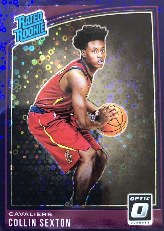 The Collin Sexton 2018 Optic #180 Fast Break Purple /95 Rookie card in Raw condition has not changed in price in the last 30 days and was last sold for $3.25 .