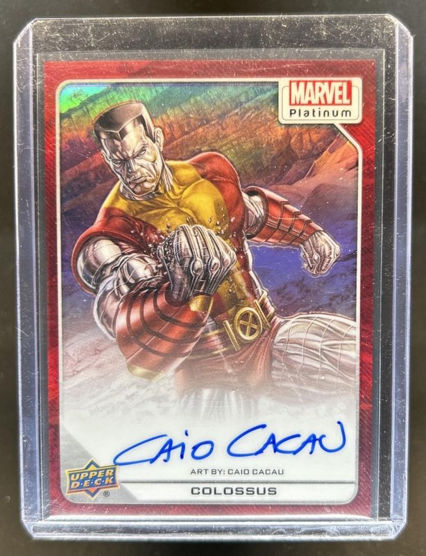 The Colossus 2023 Upper Deck Marvel Platinum #64 Red Rainbow Autographs card is 1 of 42 Colossus' card variations in the 2023 Upper Deck Marvel Platinum set being tracked by Sports Card Investor, including Base, Black Rainbow, Blue Rainbow, Blue Surge, and Purple Rainbow.
