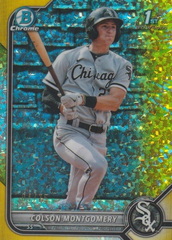 The Colson Montgomery 2022 Bowman #BCP-71 Chrome Prospects - Yellow Mini-Diamond Refractor /75 (1st) card in Raw condition has not changed in price in the last 30 days and was last sold for $49.87 .
