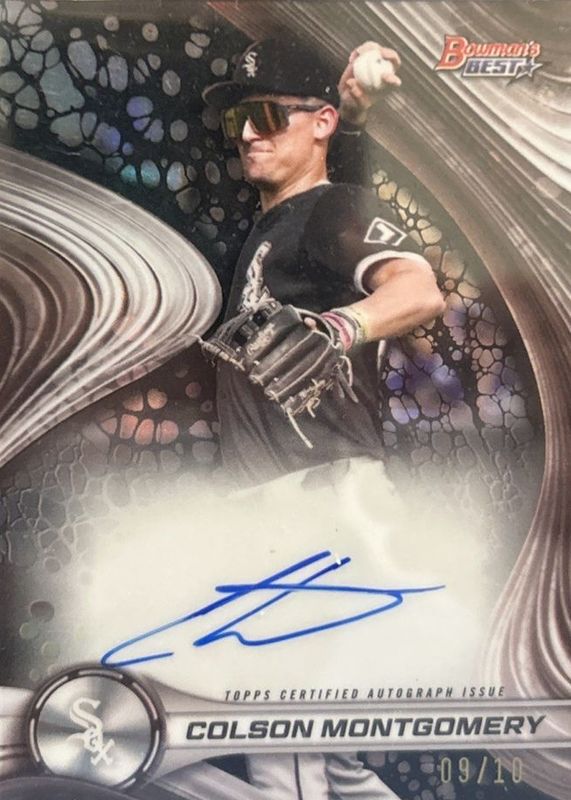 This card is 1 of 13 Colson Montgomery's card variations in the 2024 Bowman's Best set being tracked by Sports Card Investor, including Best of 2024 Autographs, Best of 2024 Autographs - Refractor, Best of 2024 Autographs - Blue Refractor /150, Best of 2024 Autographs - Green Refractor /99, and Best of 2024 Autographs - Gold Mini-Diamond Refractor /50.