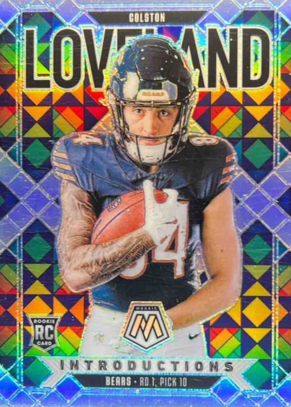 The Colston Loveland 2025 Mosaic #5 Introductions - Silver Rookie card in Raw condition has moved up $0.13 (+2.9%) in the last 30 days and was last sold for $4.63 .