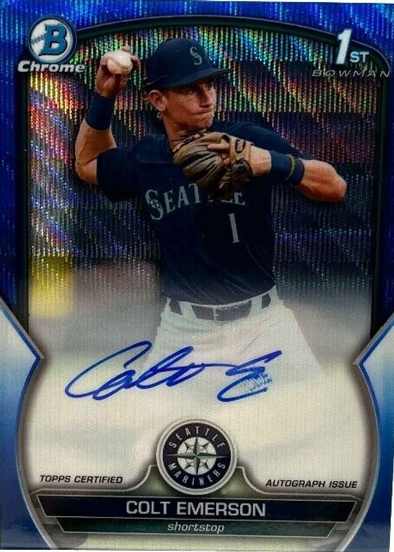 2023 Bowman Draft Chrome Baseball Colt Emerson Blue Wave Refractor 1st Auto /150