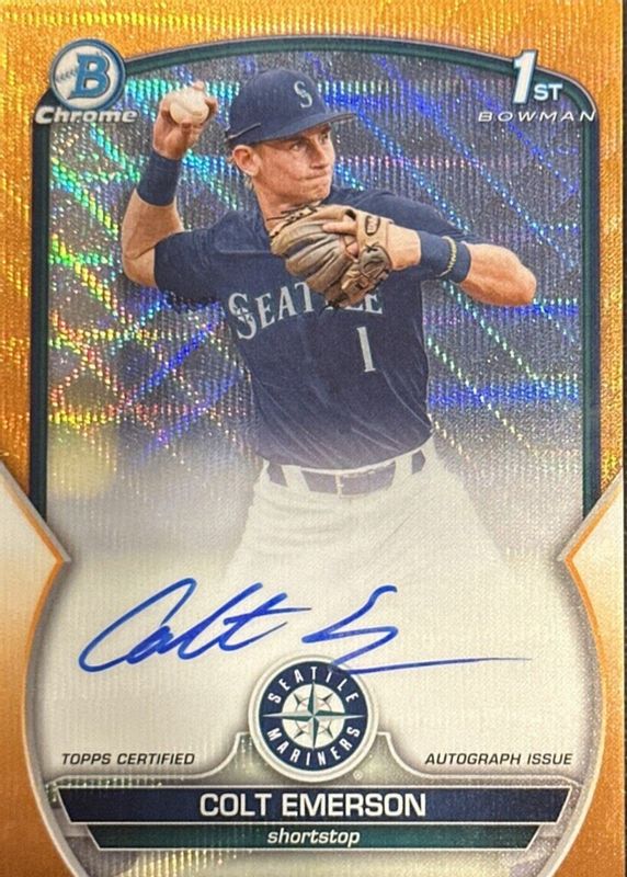 Colt Emerson 2023 Bowman Draft #CDA-CE Chrome Prospect Auto - Orange Wave Refractor /25 (1st) RAW Price Guide