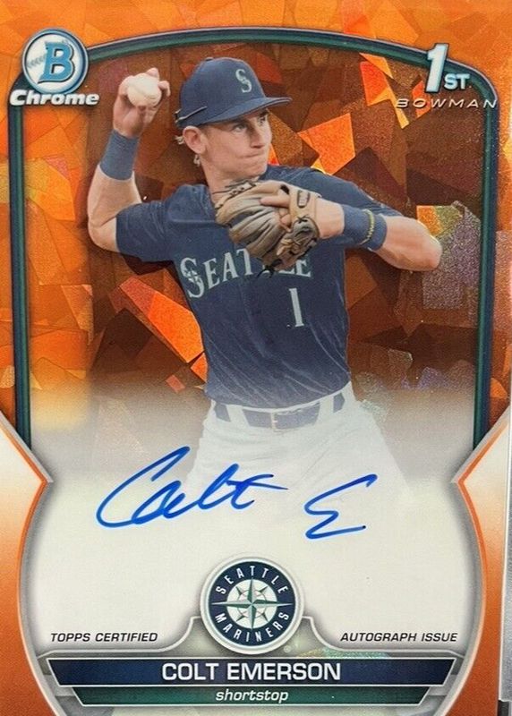 2023 Bowman Draft Sapphire Colt Emerson Auto Orange Refractor 1st #/25 #CDA-CE