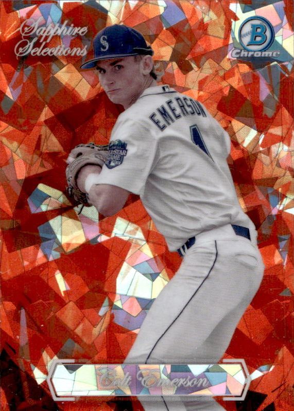 This card is 1 of 22 Colt Emerson's card variations in the 2023 Bowman Draft Sapphire Edition set being tracked by Sports Card Investor, including Chrome (1st), Chrome - Yellow /75 (1st), Chrome - Gold /50 (1st), Chrome - Orange /25 (1st), and Chrome - Black /10 (1st).