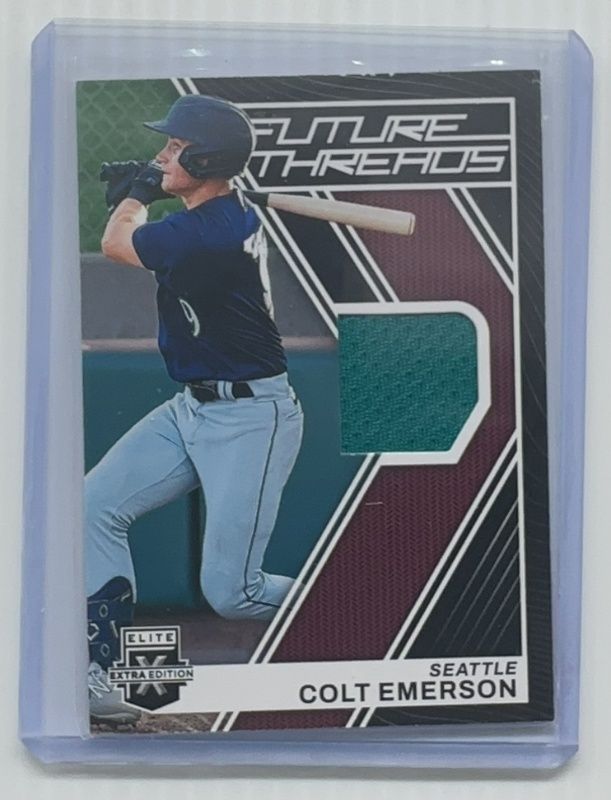 The Colt Emerson 2023 Elite Extra Edition #FT-CE Future Threads card is 1 of 115 Colt Emerson's card variations in the 2023 Elite Extra Edition set being tracked by Sports Card Investor, including #73 Base, #153 Base, #153 Pink, #73 Pink, and #73 Signatures.