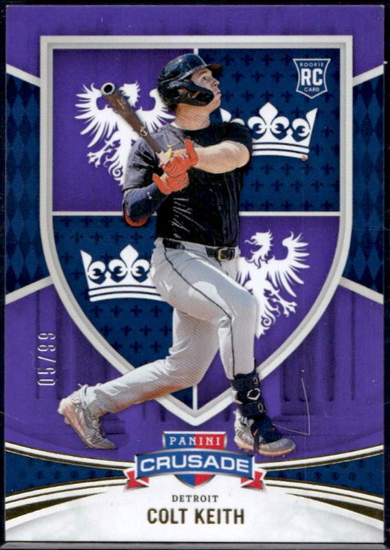 The Colt Keith 2024 Crusade #152 Purple /99 Rookie card is 1 of 40 Colt Keith's card variations in the 2024 Crusade set being tracked by Sports Card Investor, including Base, Silver, Red /299, Blue /199, and Teal /49.