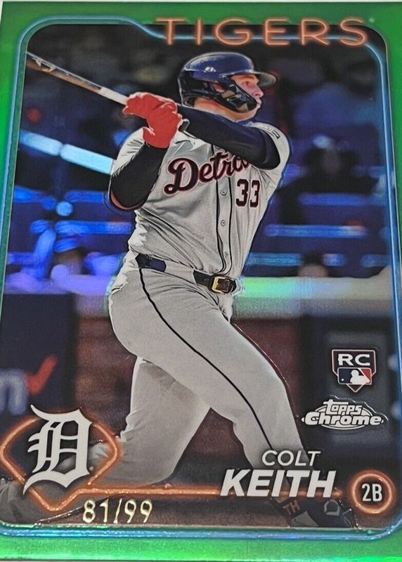 2024 Topps Chrome Green Refractors #2 Colt Keith RC /99 Detroit Tigers