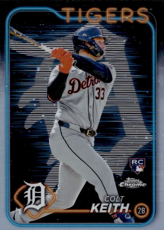 This card is 1 of 64 Colt Keith's card variations in the 2024 Topps Chrome set being tracked by Sports Card Investor, including Base, Negative Refractor, Pink Refractor, Prism Refractor, and RayWave Refractor.