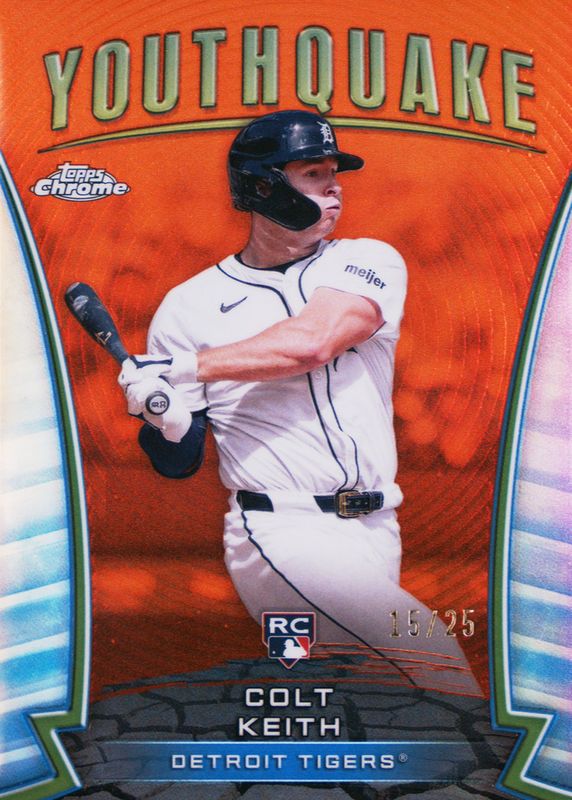 The Colt Keith 2024 Topps Chrome Update #YQ-54 Youthquake - Orange Refractor /25 Rookie card in Raw condition has not changed in price in the last 30 days and was last sold for $12.75 .