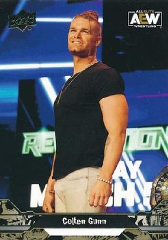 The Colten Gunn 2023 Upper Deck AEW #2 Gold card is 1 of 56 Colten Gunn's card variations in the 2023 Upper Deck AEW set being tracked by Sports Card Investor, including #75 Base, #100 Base, #2 Base, #100 Clear Cut, and #2 Clear Cut.