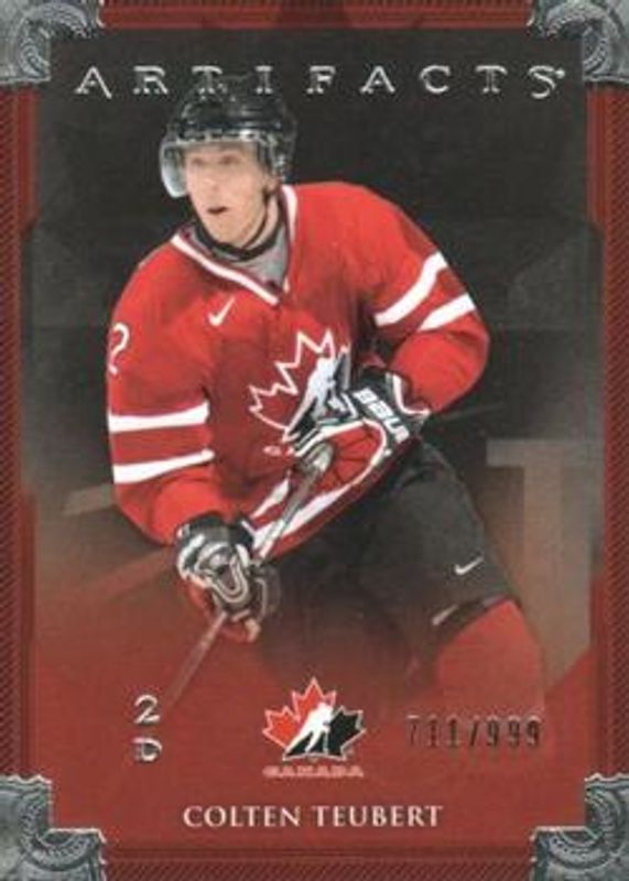 The Colten Teubert 2013 Upper Deck Artifacts #131 Base /899 card is 1 of 13 Colten Teubert's card variations in the 2013 Upper Deck Artifacts set being tracked by Sports Card Investor, including Ruby /299, Emerald /99, Sapphire /85, Spectrum /25, and Black /5.