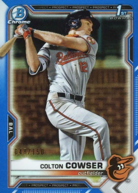 The Colton Cowser 2021 Bowman Draft #BDC-166 Chrome - Blue Refractor /150 (1st) card in Raw condition has not changed in price in the last 30 days and was last sold for $124.99 .