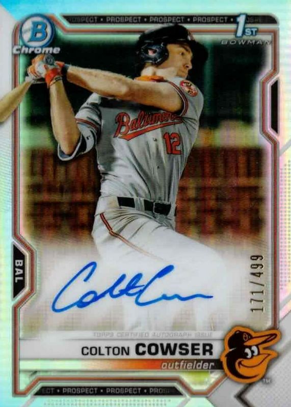 Best Prices Available For Sale of Colton Cowser 2021 Bowman Draft #CDA-CC Chrome DP Auto - Refractor /499 (1st)