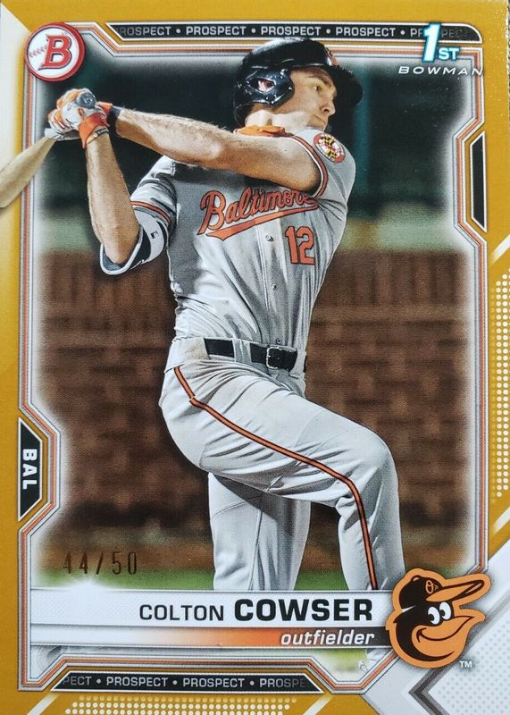 2021 Bowman Draft Colton Cowser 1st Bowman 36/50 Gold Parallel