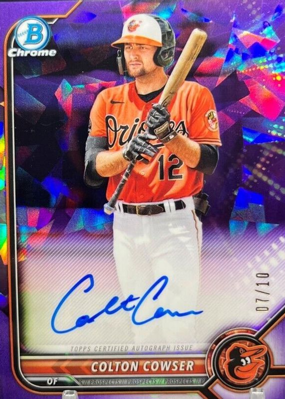 The Colton Cowser 2022 Bowman Sapphire Edition #BSPA-CC Chrome Prospect Auto - Purple /10 card in Raw condition has not changed in price in the last 30 days and was last sold for $350.00 .