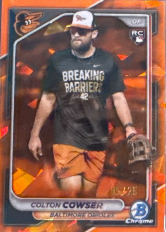 The Colton Cowser 2024 Bowman Chrome Sapphire Edition #33 Image Variation - Orange /25 Rookie card in Raw condition has not changed in price in the last 30 days and was last sold for $90.00 .