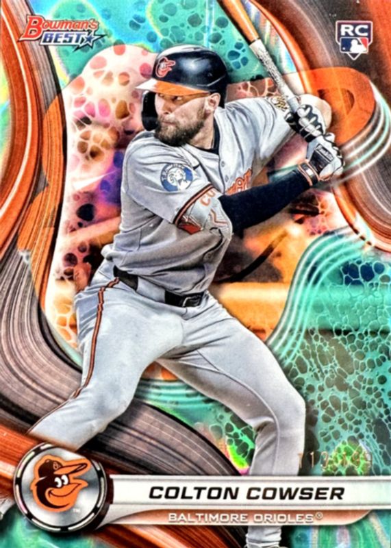 This card is 1 of 32 Colton Cowser's card variations in the 2024 Bowman's Best set being tracked by Sports Card Investor, including Base, Refractor, Wave Refractor, Mini-Diamond Refractor /299, and Purple Mojo Refractor /250.
