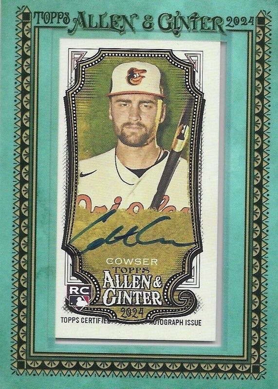This card is 1 of 16 Colton Cowser's card variations in the 2024 Topps Allen & Ginter set being tracked by Sports Card Investor, including Base, Allen & Ginter Back Mini, Black Border Mini, Foil Filigree, and Gold Border Mini.