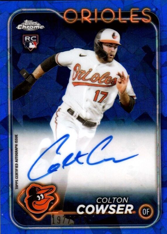 The Colton Cowser 2024 Topps Chrome Sapphire Edition #CSA-CC Autographs /199 Rookie card in Raw condition has not changed in price in the last 30 days and was last sold for $30.00 .