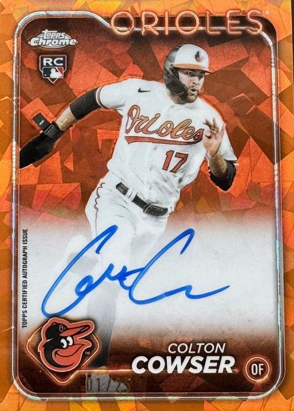 2024 TOPPS CHROME SAPPHIRE COLTON COWSER RC ORANGE REFRACTOR AUTO 19/25 Orioles