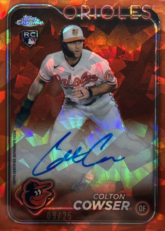 The Colton Cowser 2024 Topps Chrome Update Sapphire Edition #USA-CC Autographs - Orange /25 Rookie card in Raw condition has not changed in price in the last 30 days and was last sold for $127.51 .