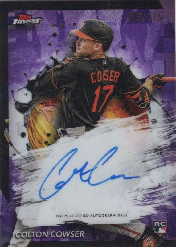 The Colton Cowser 2024 Topps Finest #FA-CC Finest Autographs - Purple Refractor /125 Rookie card in Raw condition has not changed in price in the last 30 days and was last sold for $20.00 .