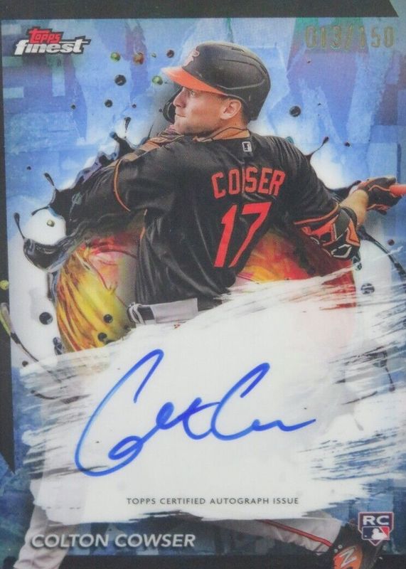 The Colton Cowser 2024 Topps Finest #FA-CC Finest Autographs - Sky Blue Refractor /150 Rookie card in Raw condition has not changed in price in the last 30 days and was last sold for $21.50 .