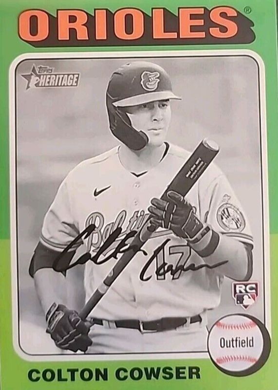 This card is 1 of 15 Colton Cowser's card variations in the 2024 Topps Heritage set being tracked by Sports Card Investor, including Base, Black Border, Flip Stock, Red Border, and White Border.