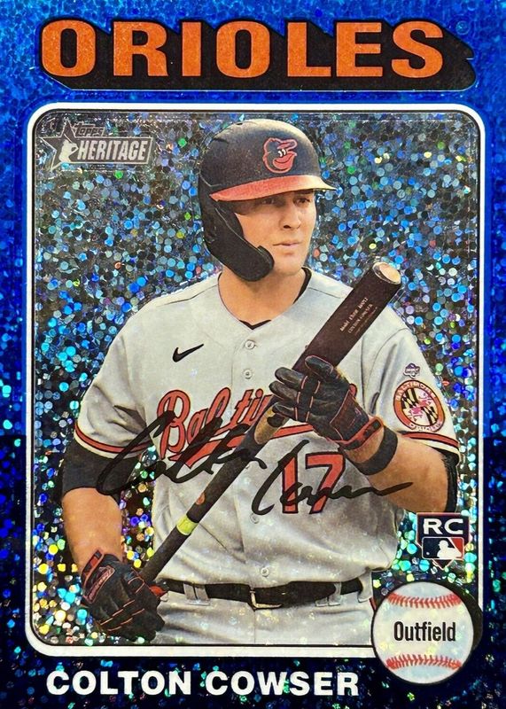 The Colton Cowser 2024 Topps Heritage #388 Chrome - Blue Sparkle Refractor Rookie card in Raw condition has moved up $2.26 (+228%) in the last 30 days and was last sold for $3.25 .