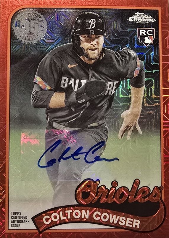 Auctions Ending Soon for Colton Cowser 2024 Topps Silver Pack #T89C-70 1989 Chrome Promo Autographs - Red Refractor (Series 1) /5 Rookie RAW