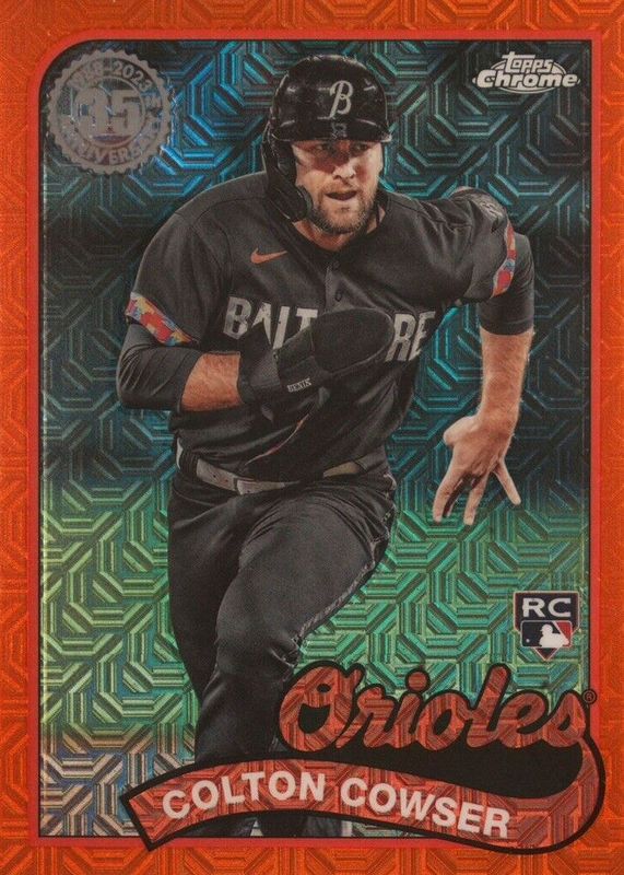 The Colton Cowser 2024 Topps Silver Pack #T89C-70 1989 Chrome Promo - Orange Refractor (Series 1) /25 Rookie card in Raw condition has not changed in price in the last 30 days and was last sold for $79.99 .