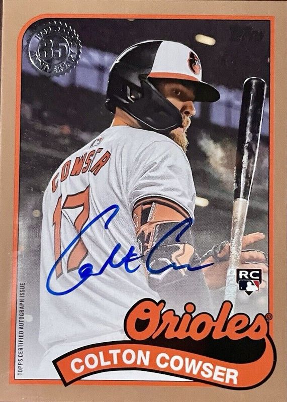 The Colton Cowser 2024 Topps Update #89AU-CC 1989 Topps Baseball Autographs - Gold /50 Rookie card in Raw condition has not changed in price in the last 30 days and was last sold for $75.00 .
