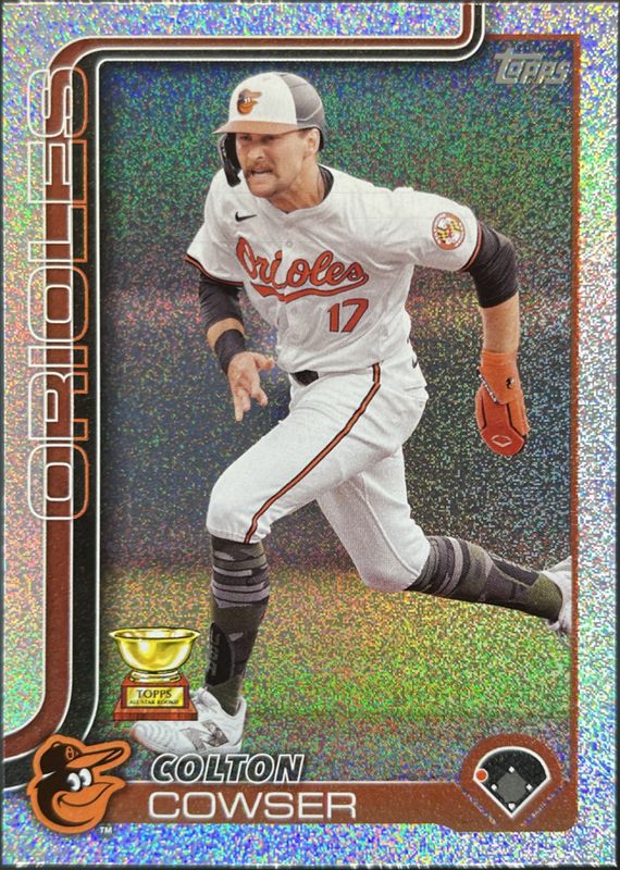 The Colton Cowser 2025 Topps #230 Sandglitter card is 1 of 94 Colton Cowser's card variations in the 2025 Topps set being tracked by Sports Card Investor, including Base, Aqua Holo Foil, Diamante Foil, Holo Foil, and Pink Diamante Foil.