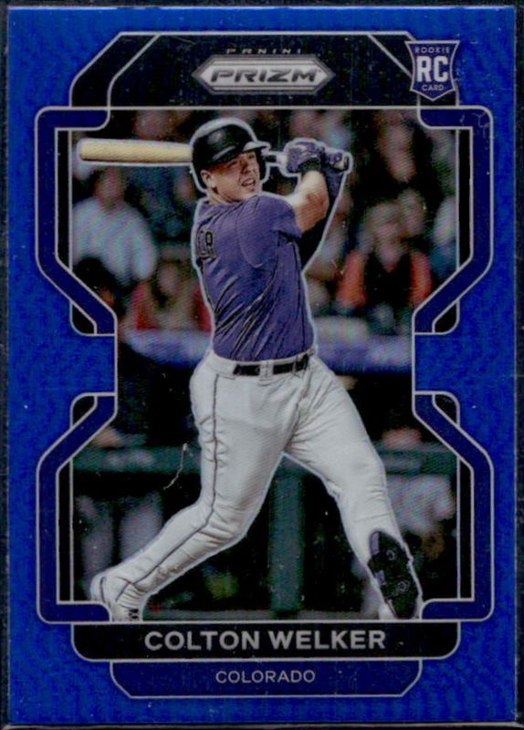 The Colton Welker 2022 Prizm #151 Blue Rookie card is 1 of 64 Colton Welker's card variations in the 2022 Prizm set being tracked by Sports Card Investor, including Base, Blue Velocity, Carolina Blue, Cosmic Haze, and Giraffe.