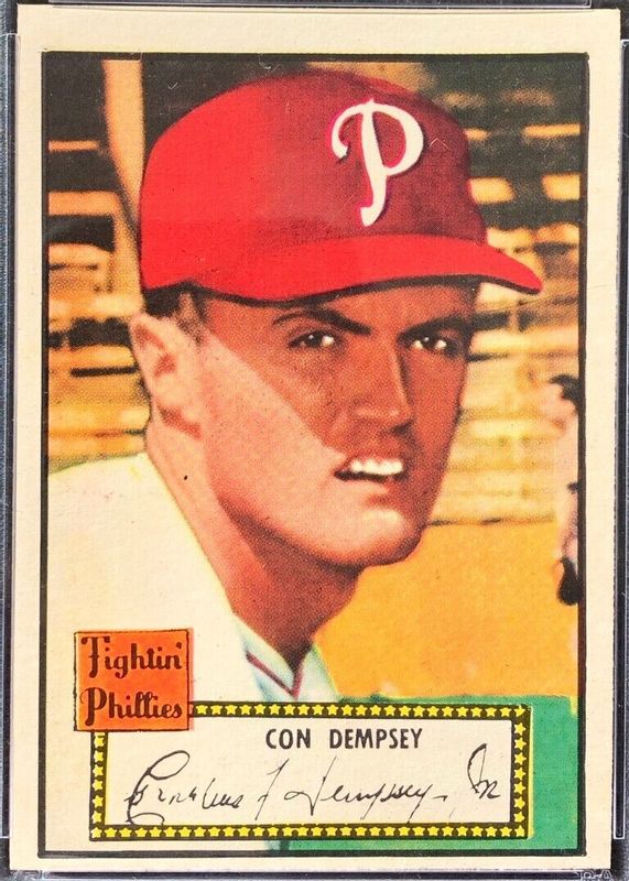 This card is 1 of 2 Con Dempsey's card variations in the 1952 Topps set being tracked by Sports Card Investor, including Black Back.