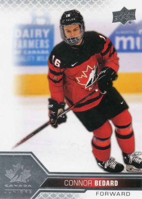 The Connor Bedard 2022 Upper Deck Team Canada Juniors #2 Men's U-20 card in Raw condition has moved up $0.95 (+40.4%) in the last 30 days and was last sold for $3.30 .