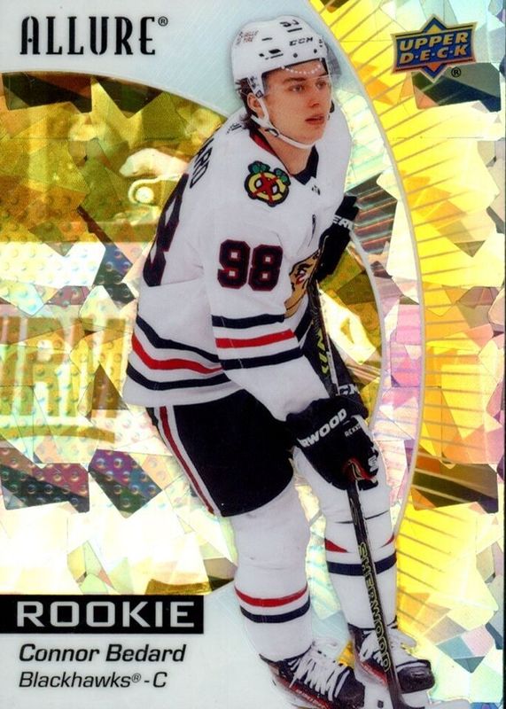 The Connor Bedard 2023 Upper Deck Allure #102 Yellow Taxi Rookie card in Raw condition has moved up $0.21 (+0.5%) in the last 30 days and was last sold for $42.00 .